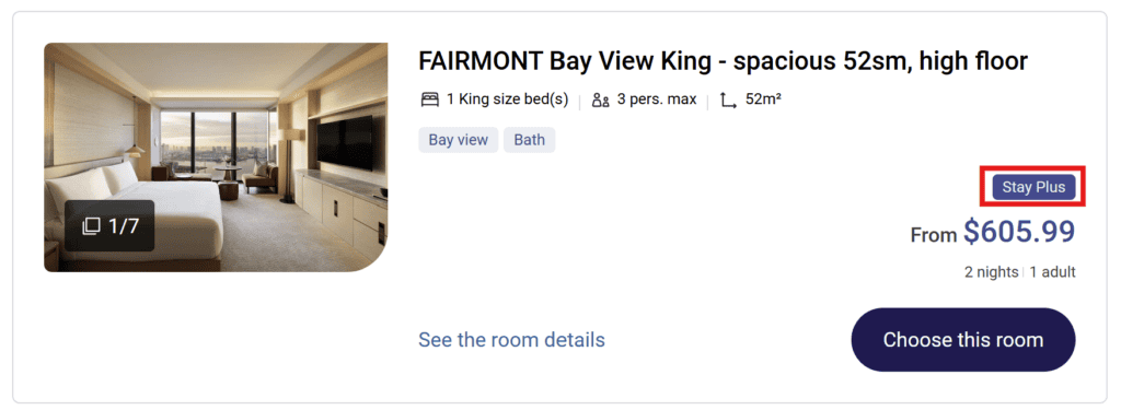 When completing your booking, you’ll see that you’re booking the room with “Stay Plus” and can then confirm with a card.
