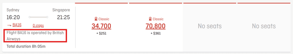 Note: The exact number of Qantas Points required depends on the distance flown, cabin class, and the applicable award chart.